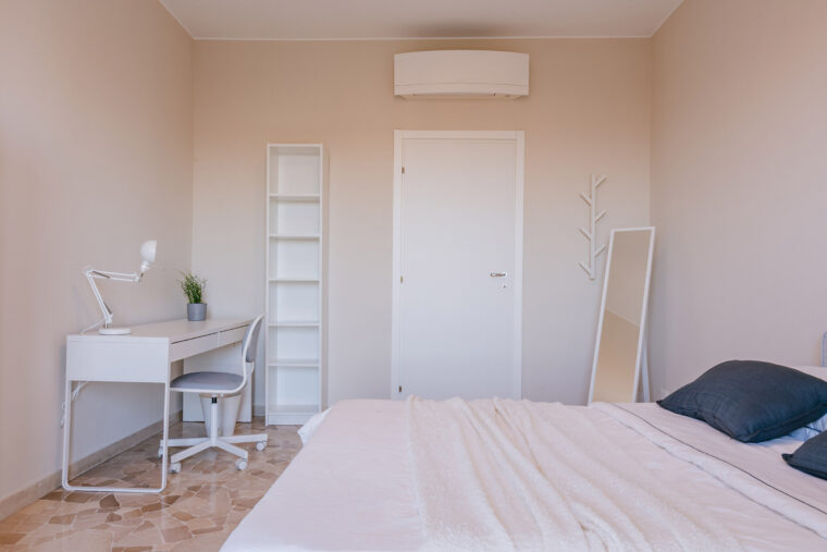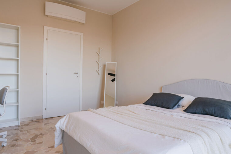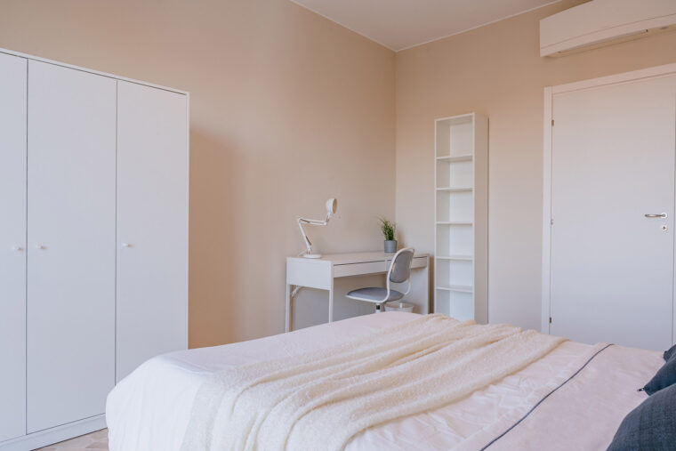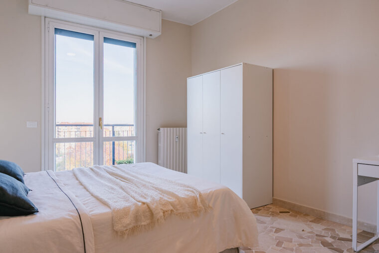 In un appartamento sito in Piazzale Giovanni delle Bande Nere 7, questa stanza singola è riservata a studenti universitari, stagisti o giovani lavoratori. Completamente arredata e corredata, è dotata di letto matrimoniale, comodino con abat jour, armadio individuale, scrivania, libreria e sedia.
