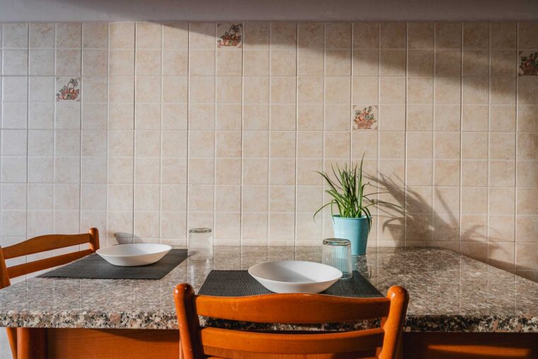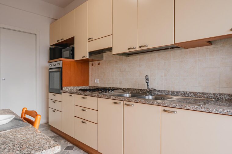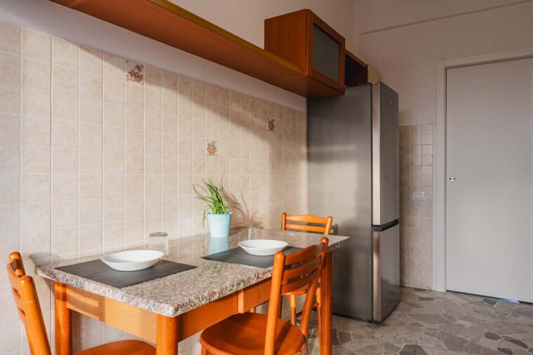 Cucina, zona living e bagno in condivisione con gli altri inquilini dell’appartamento.