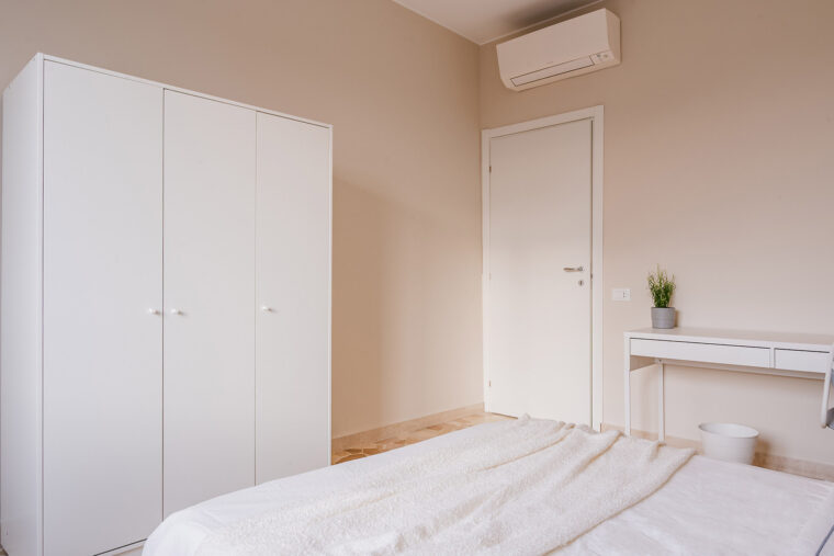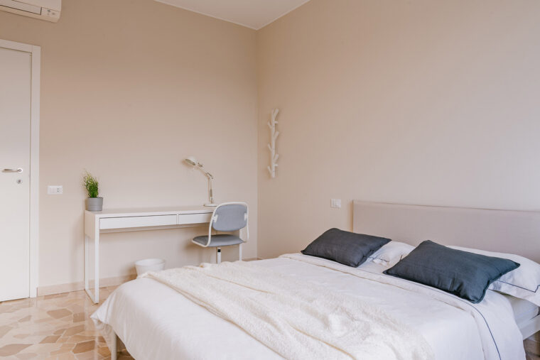 In un appartamento sito in Piazzale Giovanni delle Bande Nere 7, questa stanza singola è riservata a studenti universitari, stagisti o giovani lavoratori. Completamente arredata e corredata, è dotata di letto matrimoniale, comodino con abat jour, armadio individuale, scrivania, libreria e sedia.