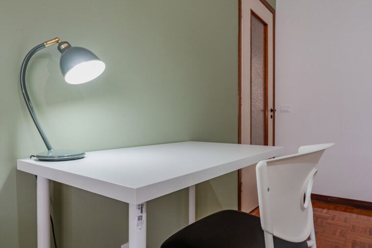 In un appartamento sito in via Privata Assab 15, questa stanza doppia è riservata a giovani lavoratori o stagisti. Completamente arredata e corredata, è dotata di due letti individuali, ciascuno con proprio comodino con abat jour, due armadi individuali a doppia anta, due scrivanie, due librerie e sedie.
