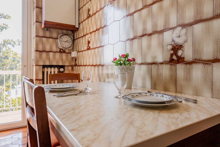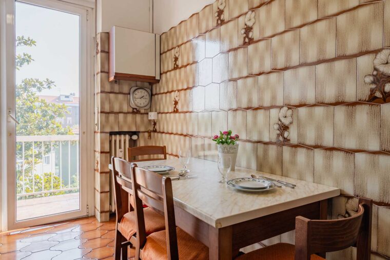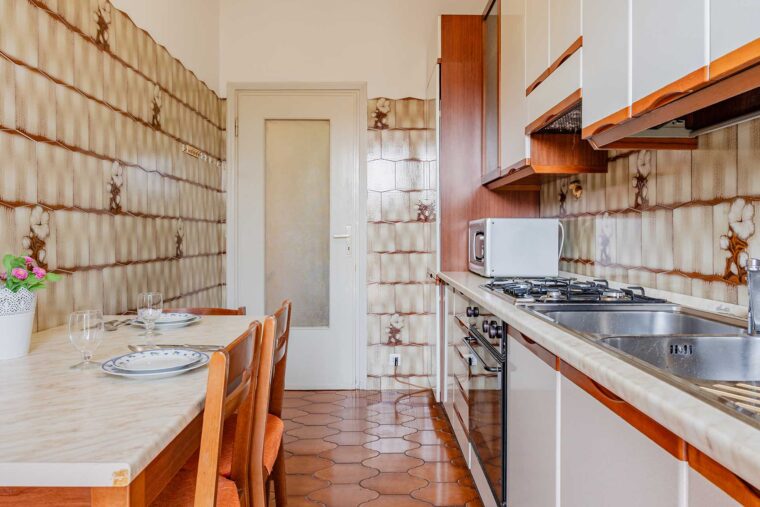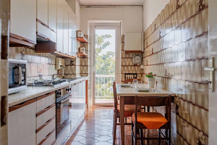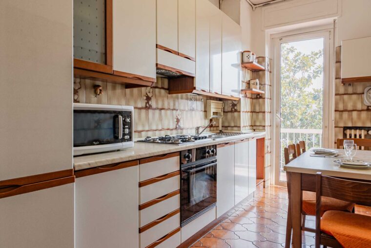 Cucina abitabile e bagno in condivisione con gli altri inquilini dell’appartamento.