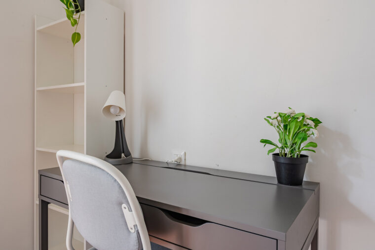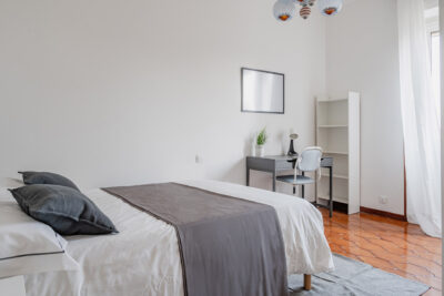In un appartamento sito in via Cabella 43, questa stanza singola è riservata a giovani lavoratori o stagisti. Completamente arredata e corredata, è dotata di letto ad una piazza e mezza, comodino con abat jour, armadio individuale a doppia anta, scrivania, libreria e sedia.