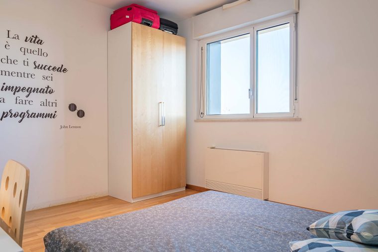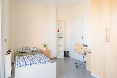 In un appartamento sito in viale Dell’Innovazione 22, questa stanza singola è riservata a studenti universitari, stagisti o giovani lavoratori. Completamente arredata e corredata, è dotata di letto individuale, comodino con abat jour, armadio individuale a doppia anta, scrivania, libreria e sedia.